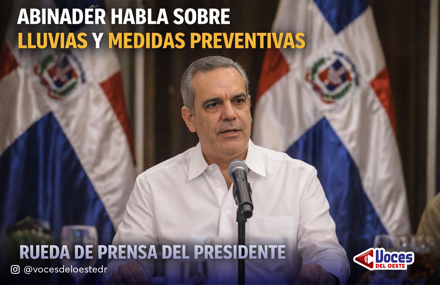 El presidente Luis Abinader ofreció este miércoles una rueda de prensa en la que abordó la situación climática que afecta al país, destacando las medidas adoptadas por el Gobierno ante las fuertes lluvias provocadas por la vaguada que incide sobre el territorio nacional.