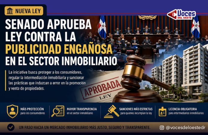 El Senado de la República aprobó en primera lectura un proyecto de ley que busca frenar la publicidad engañosa en el sector inmobiliario, una práctica que durante años ha generado incertidumbre, conflictos legales y pérdidas económicas para cientos de dominicanos.